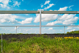 Ground level view of a typical horse racing barrier seen in Newmarket, UK. The track is located at Warren Hill.