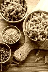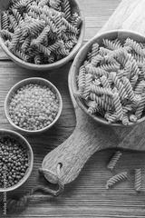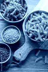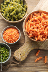A variety of fusilli pasta from different types of legumes. Gluten-free pasta.
