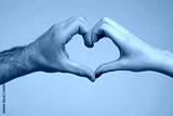 Female and male hands in form of heart. Hands in shape of love heart. Hearts froms hands. Love concept. Sign heart by fingers. Love on Valentine day. Two human hold hand gesturing love shape symbol.