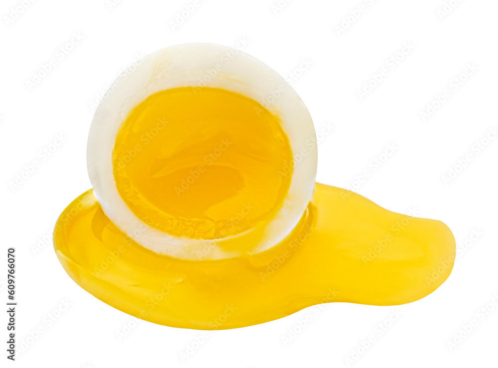 Sliced poached egg isolated on white background