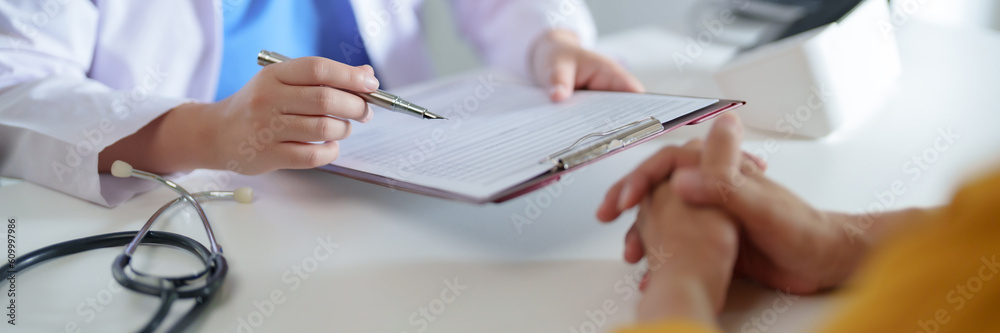 Doctor with patient consultation in medical office. Visiting Physician concept.