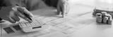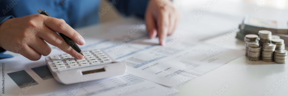 Woman calculating monthly expenses, taxes and interest calculate at home.