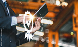 technology, guarantee, reward, working, business, management, document, approval, inspections, industrial. business man hold a tablet then checking and approval inspections. guarantee reward hud show.