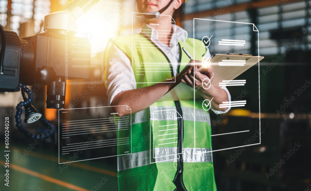 engineer, checklist, contract, management, document, approval, inspections, checkmark, working, industrial. engineer hold a checklist or notebooks for inspection in industrial and factory for safety.