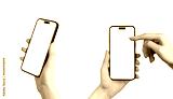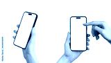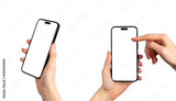 Berlin, Germany June 01 2023 Hands holding mobile phone screen mockups, blank smartphone mock-ups set, isolated on white