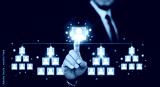 Business team management concept, Businessman touch visual screen for organization group of employee manage manpower to success in business strategy. Leader project team management,HR human resource