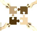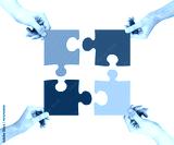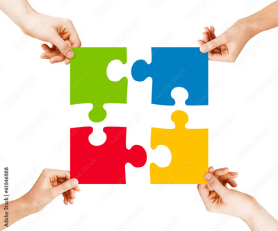 four hands connecting puzzle pieces