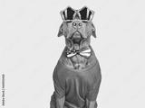Cute brown puppy, sunglasses and American Flag. Travel preparation and planning. Closeup, indoors. Studio shot. Concept of care, education, obedience training and raising pets