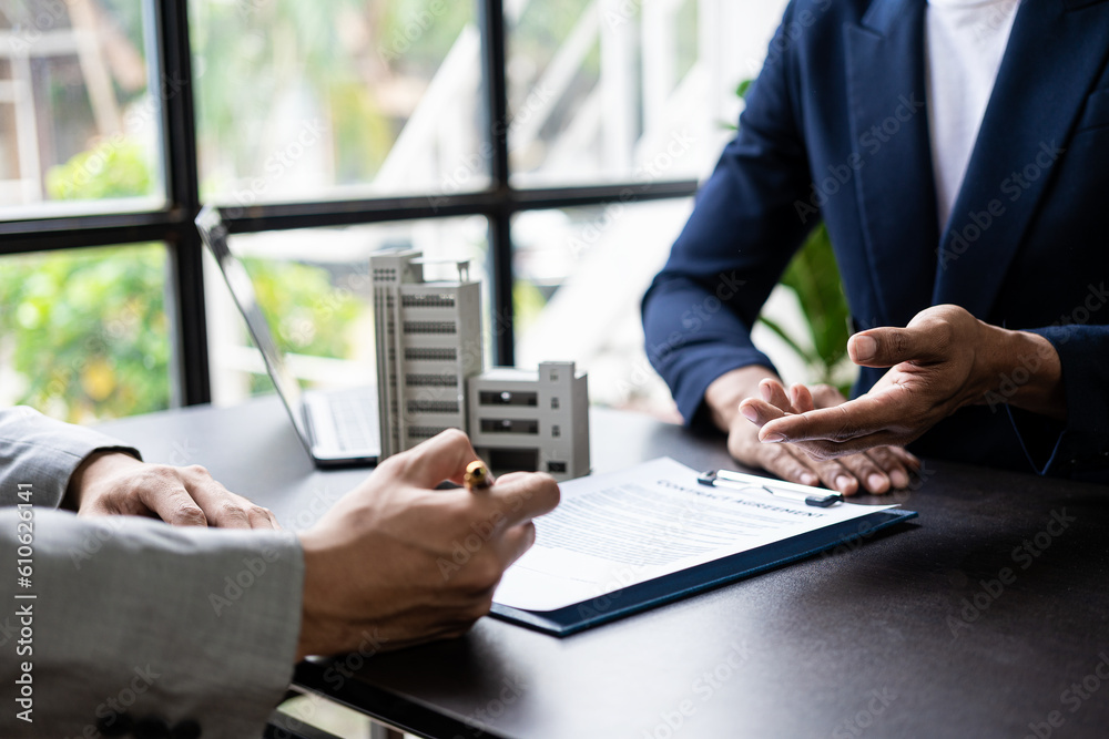 Real estate brokers present and give advice to customers who buy homes and recommend insurance as a free gift.