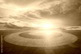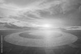 Round square floor and sky clouds background at sunset