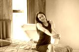 Beauty Asian women sitting on bed in bedroom at home