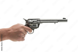 Men hand with revolver pistol isolated on a white background