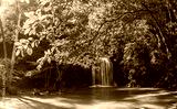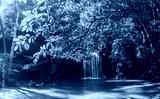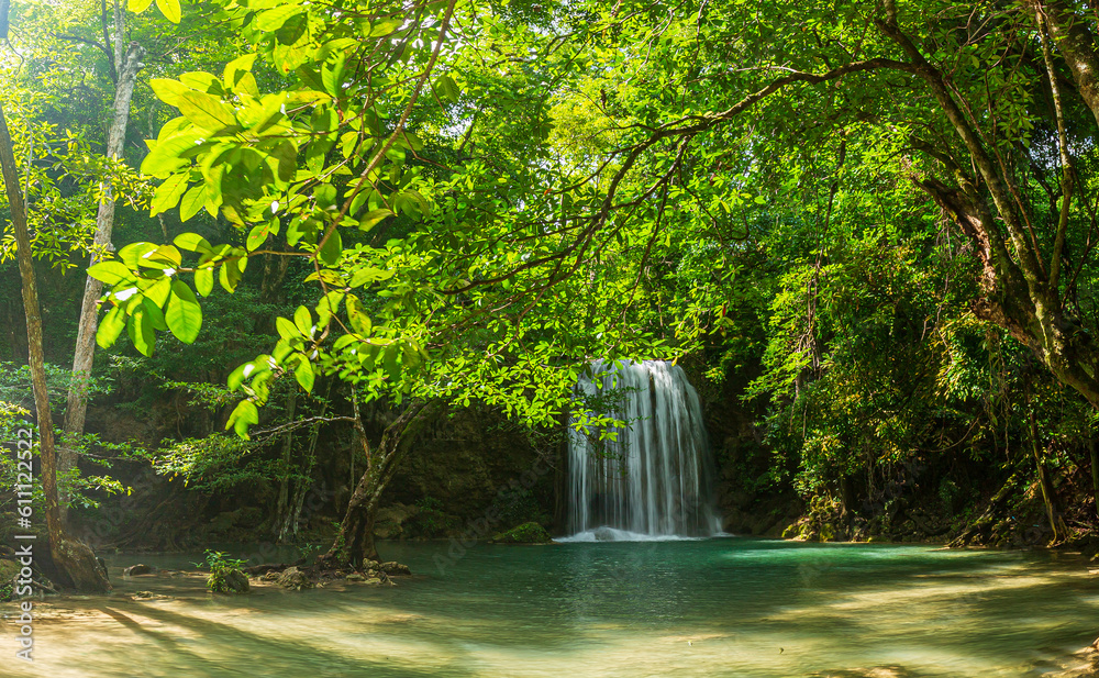 Erawan Waterfall,Jungle landscape with flowing turquoise waters of Erawan Waterfall at Tropical Rainforest Kanchanaburi National Park