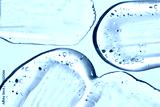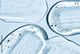 Smears of a transparent gel on a blue background, samples of a transparent color cosmetic product, macro.