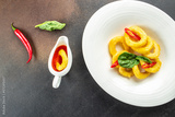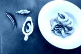 fried squid rings breaded on a dark background. banner, menu, recipe place for text, top view