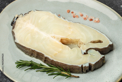 fish fillet sreak. Anarhichas fish sreak. Food recipe background. Close up