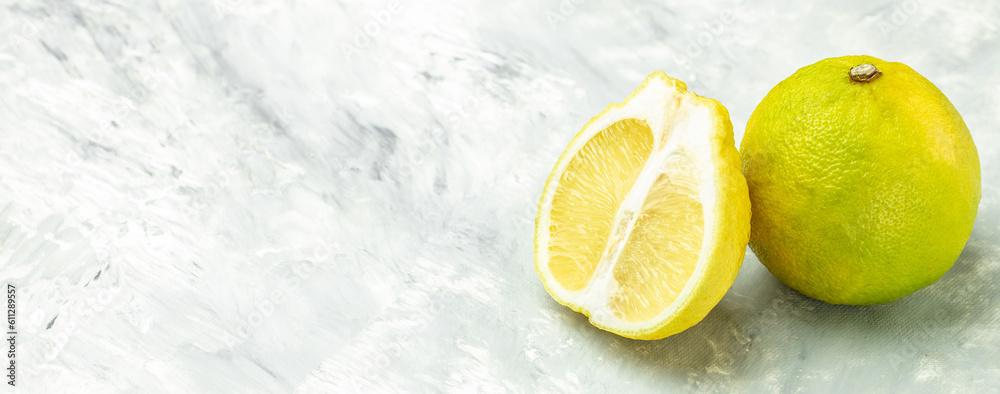 Fresh ripe bergamot orange fruits, fragrant citrus used in earl grey tea, medicine and spa treatments, close up