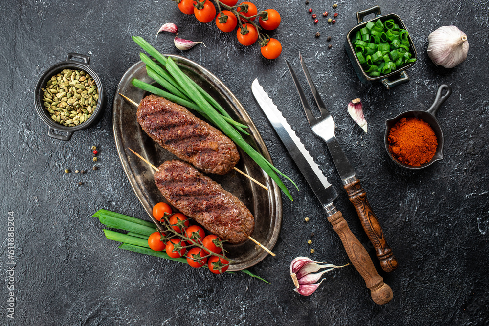 Minced Lula kebab grilled, Restaurant menu, dieting, cookbook recipe top view