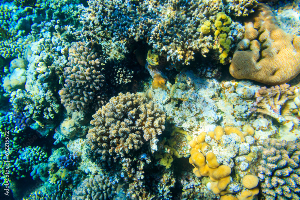 Coral reef in the Red sea in Ras Mohammed national park. Sinai peninsula in Egypt