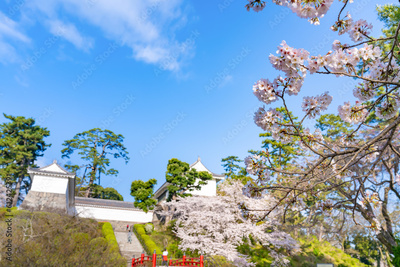 神奈川県小田原市 小田原城と桜の風景
