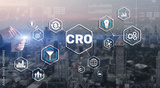 Conversion Rate Optimization. CRO Technology Finance concept Businessman pressing on a virtual screen