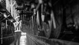 Engineer railway wearing safety uniform and helmet under checking under train ,wheels and control system for safety travel passenger. Banner cover design.