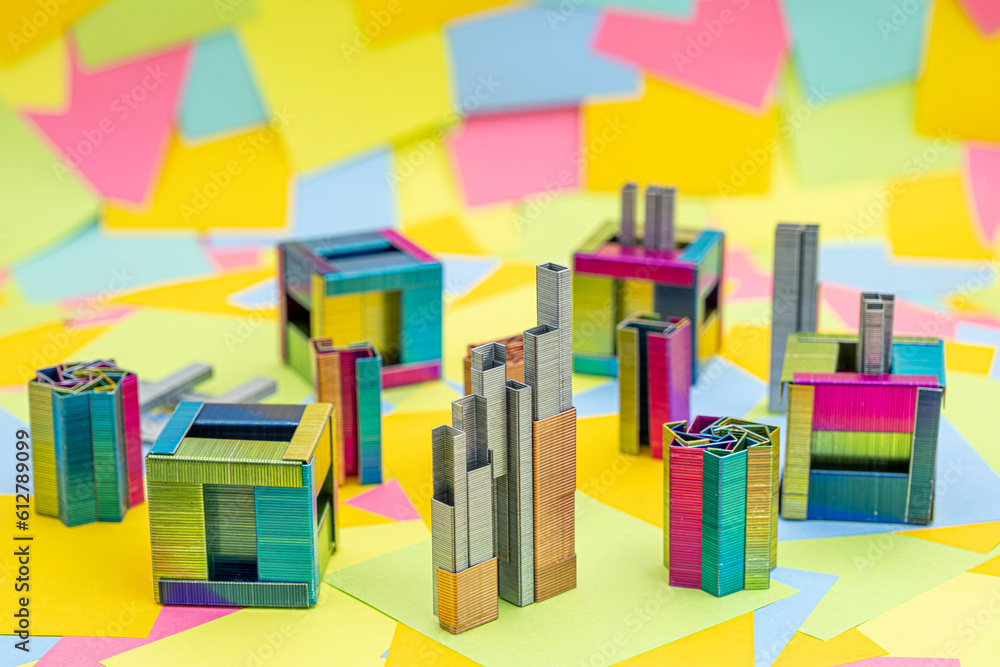 creativity to make staples in different forms with a background of multicolored paper sticky notes