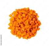 Boiled Chopped Carrot Isolated, Cooked Diced Carrots, Prepared Vegetables Cut Pile, Healthy Diet Ingredient, Chopped Carrot on White Background