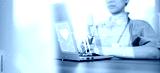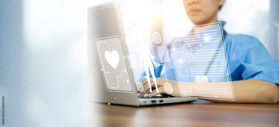 Doctor using computer working in hospital, Doctor using computer checking data patient document, Doctor using computer for health care hospital background