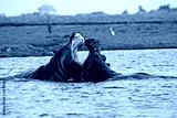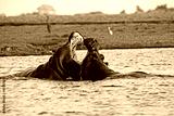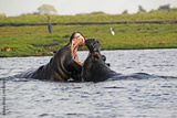 Hippopotamus, hippopotamus amphibius, Adults with Mouth wide open, Threat display, Fighting, Chobe River, Okavango Delta in Botswana