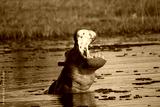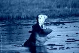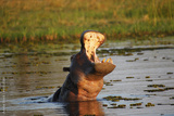 Hippopotamus, hippopotamus amphibius, Adult with Mouth wide open, Threat display, Khwai River, Moremi Reserve, Okavango Delta in Botswana
