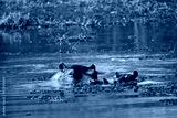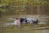 Hippopotamus, hippopotamus amphibius, Mother and Calf standing in Water, Khwai River, Moremi Reserve, Okavango Delta in Botswana
