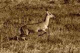 Reedbuck, redunca arundinum, Male running, Moremi Reserve, Okavango Delta in Botswana