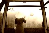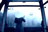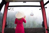Woman tourist is sitting on the Cable car while traveling to Ba Na Hills at da nang, Vietnam.