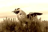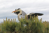 Grey Heron, ardea cinerea, Adult Taking off from Tree, Camargue in the South of France