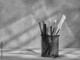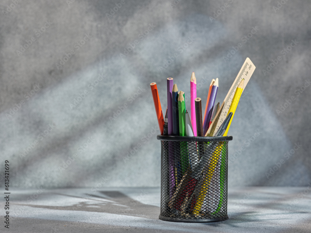 Black pencil case with pens