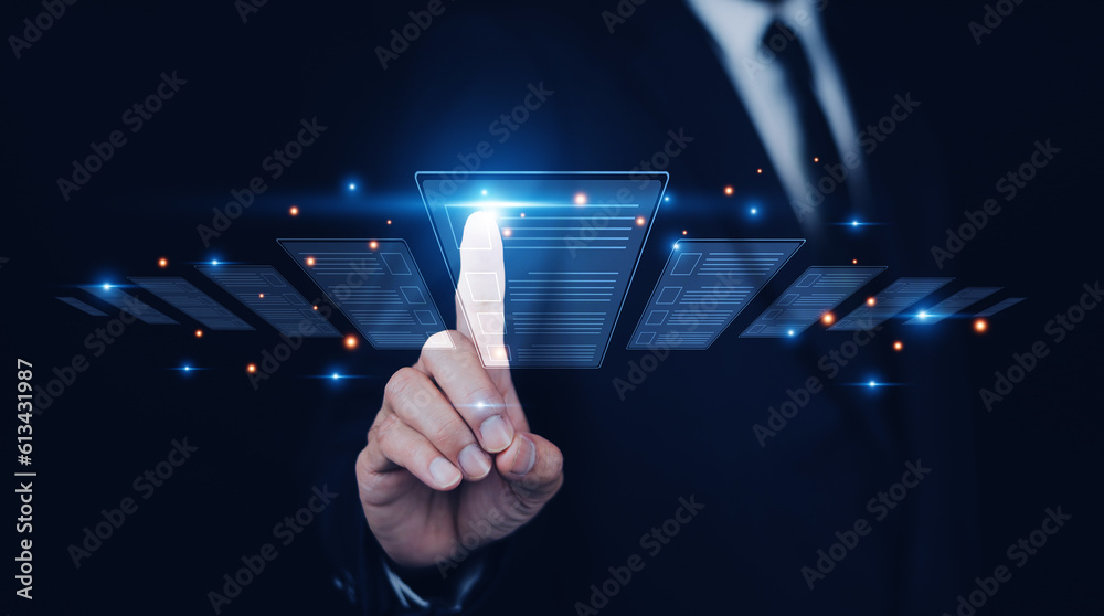 Document Management System (DMS) documentation in enterprise with ERP. Corporate business technology.