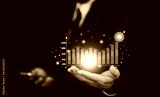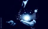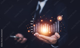 Businessman planning and strategy, Stock market, Business growth, progress or success concept. Businessman or trader is showing a growing virtual hologram stock, invest in trading.