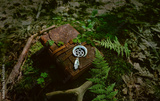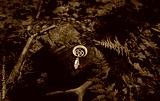 magic witch book and wiccan amulet with pentacle close up in forest, natural dark background. Esoteric Ritual, witchcraft, spiritual practice. Mysticism, modern wicca occultism concept