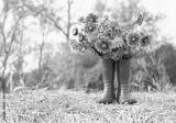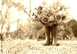Autumn, harvest season. bright flowers in red rubber boots in garden, abstract natural background. country rustic style composition. copy space. template for design