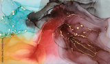 Natural luxury abstract fluid art painting in liquid ink technique. Tender and dreamy wallpaper. Mixture of colors creating transparent waves and golden swirls. For posters, other printed materials