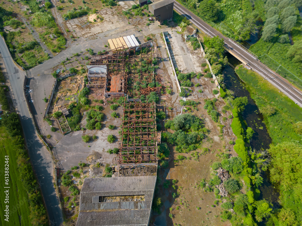 An aerial view of an abandoned factory near Ipswich in Suffolk, UK