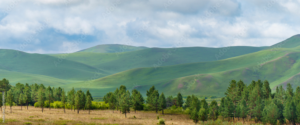 the Mongolian meadow. panoramic view of the Mongolian grassland.