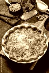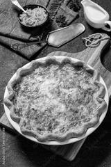 quiche with cheese and bacon filling, top view