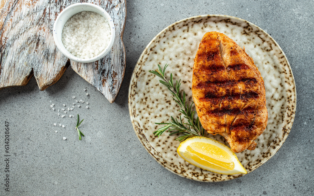 grilled chicken fillet. Healthy fats, clean eating for weight loss. Food recipe background. Close up