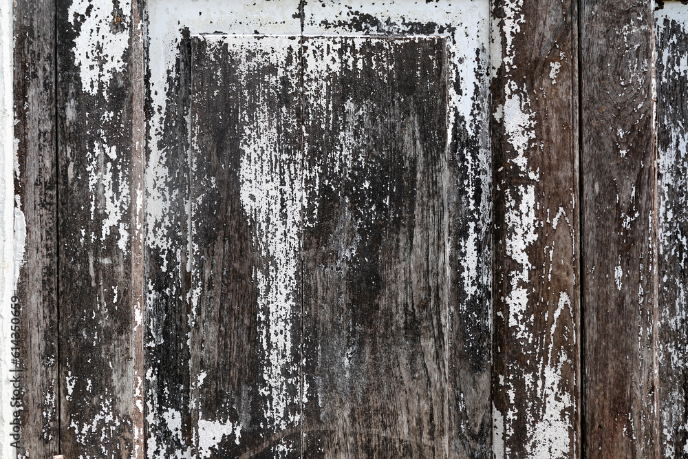 Old wood plank wall or old wooden house wall with mark paint and crack for vintage antique wood background texture.