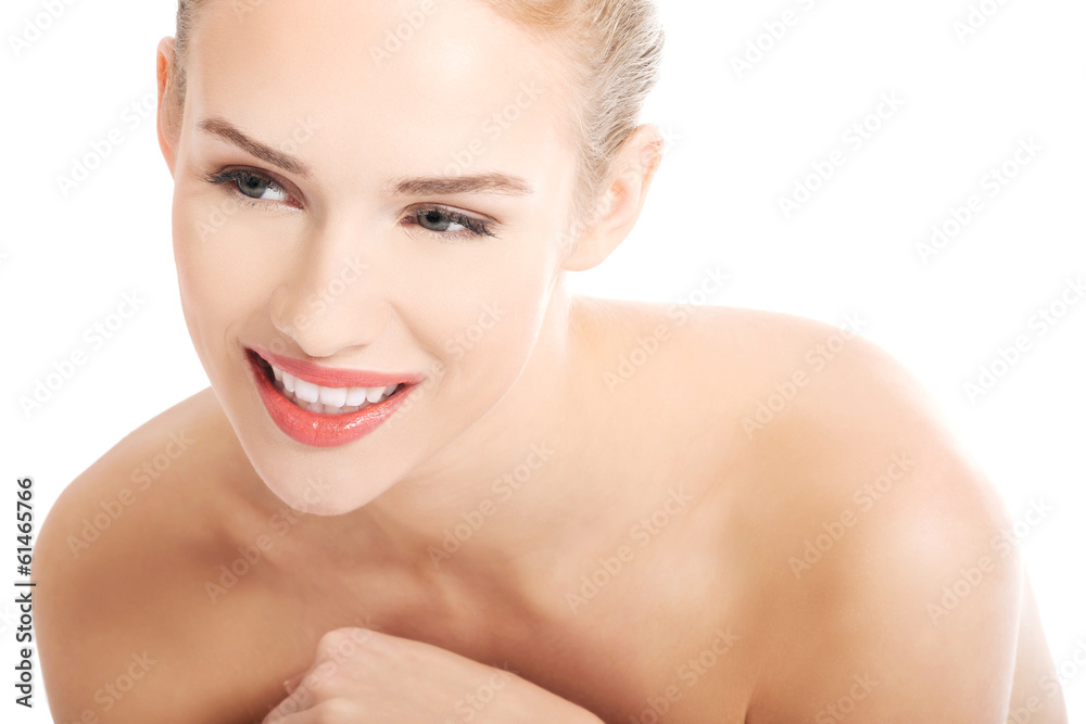 Portrait of beautiful caucasian woman with fresh clean skin.