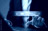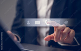 CONTACT US concept, Businessman using laptop and hand touching icon customer support, email, message chat and phone.