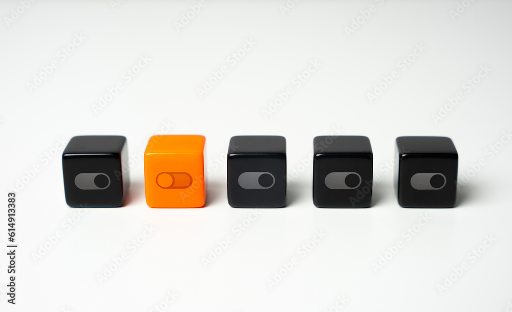The enabled switch button among disabled ones. Permission settings. Options management. Turn on only one switch, turn off the rest. First completed task.