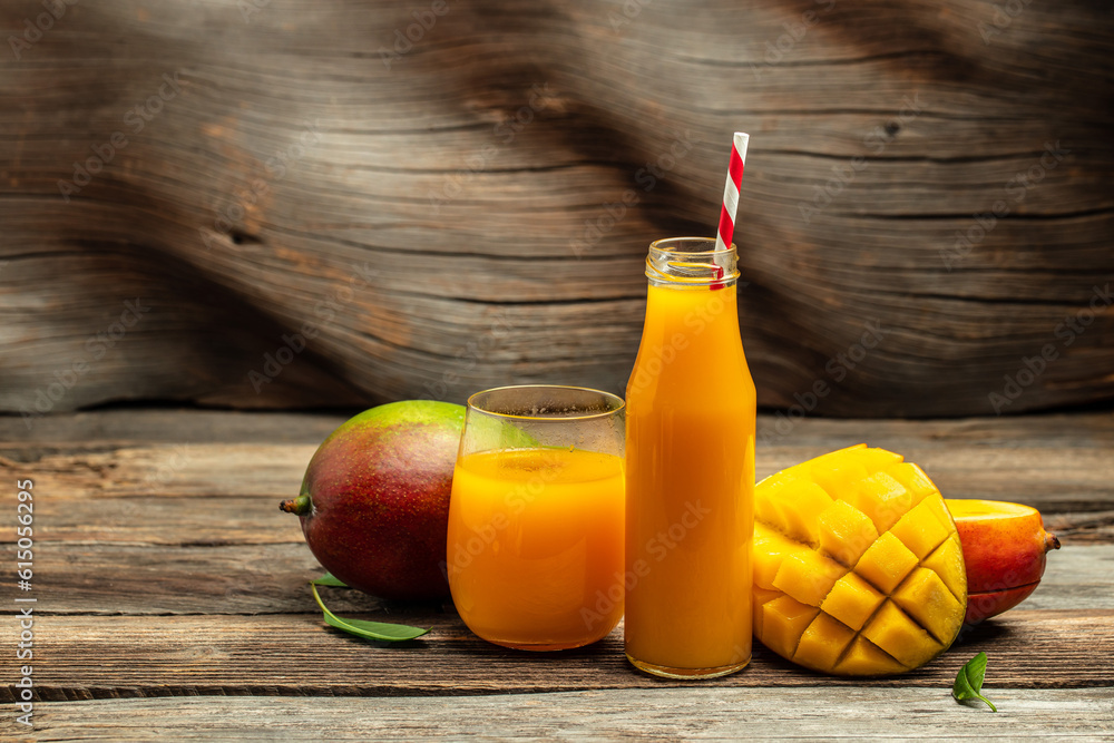 Healthy mango smoothie in a glass. Indian healthy ayurvedic cold drink with mango, Delicious breakfast or snack,